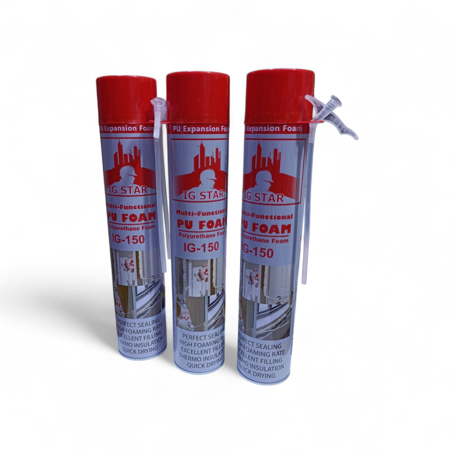 IG Star PU Expansion Foam is a high-quality, single-component polyurethane foam sealant for professional and DIY applications requiring gap filling, insulation, and sealing. It expands on contact with moisture to fill cavities, seal joints, and provide thermal and acoustic insulation around window and door frames, pipe penetrations, and other construction gaps. The polyurethane formula offers excellent adhesion to concrete, brick, wood, and metal, creating a durable, long-lasting seal that can be trimmed, sanded, and painted once cured.